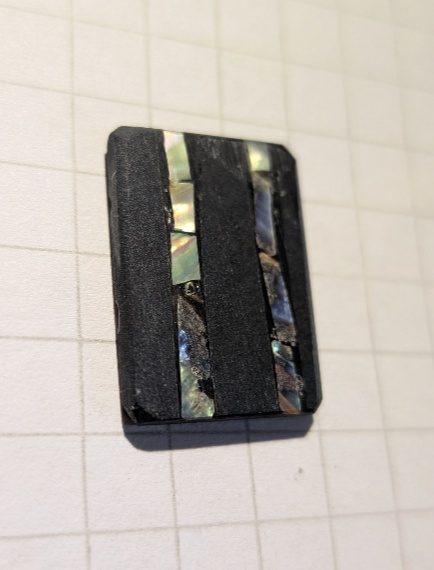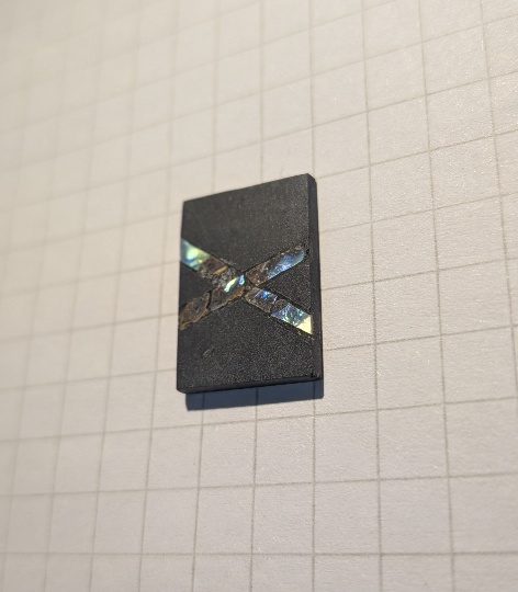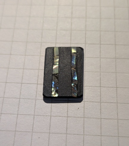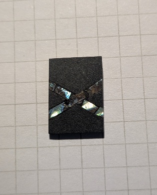 雄勝石にアワビの貝殻を埋め込んだ小さなチップです。