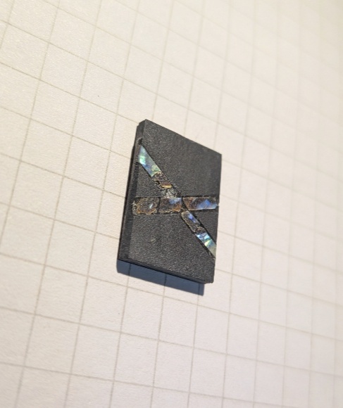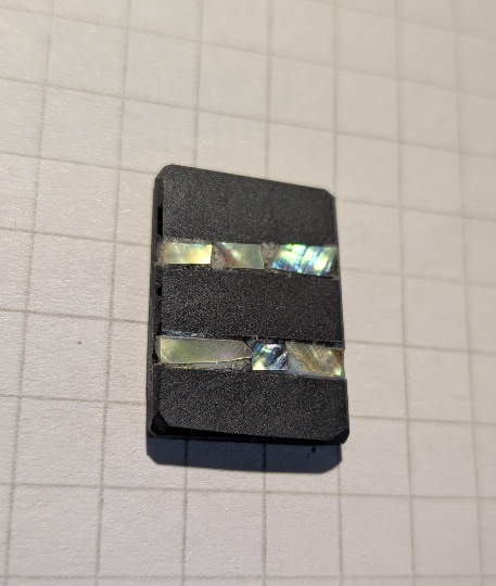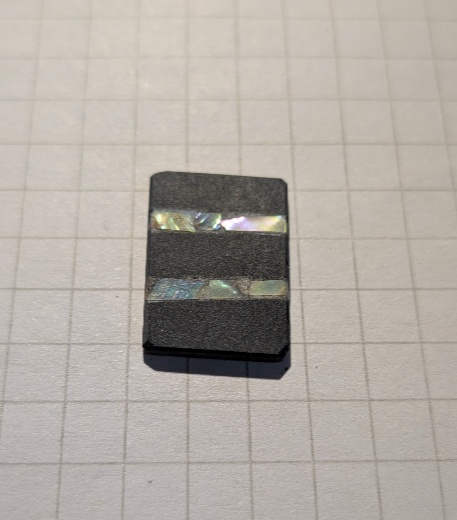 両面にクロス状に埋め込んでありますが、削り過ぎたため真珠層がほとんどありません。